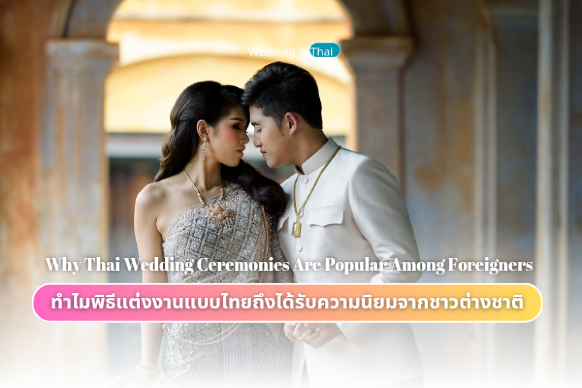 พิธีแต่งงานแบบไทยเต็มไปด้วยความหมายและสัญลักษณ์ที่แสดงถึงความรัก ความเคารพ และความผูกพันในครอบครัว การสู่ขอ การรดน้ำสังข์ การใส่แหวน และการรับพรจากผู้ใหญ่ ล้วนเป็นสัญลักษณ์ของความปรารถนาดีและความสำเร็จในชีวิตคู่ นอกจากนี้ยังมีเสน่ห์ที่เป็นเอกลักษณ์จากเครื่องแต่งกายแบบไทยที่เต็มไปด้วยรายละเอียดวิจิตร ชุดเจ้าสาวไทยที่ปักด้วยมืออย่างประณีต สร้างความตื่นตาตื่นใจและประทับใจให้กับคู่รักชาวต่างชาติเป็นอย่างมาก