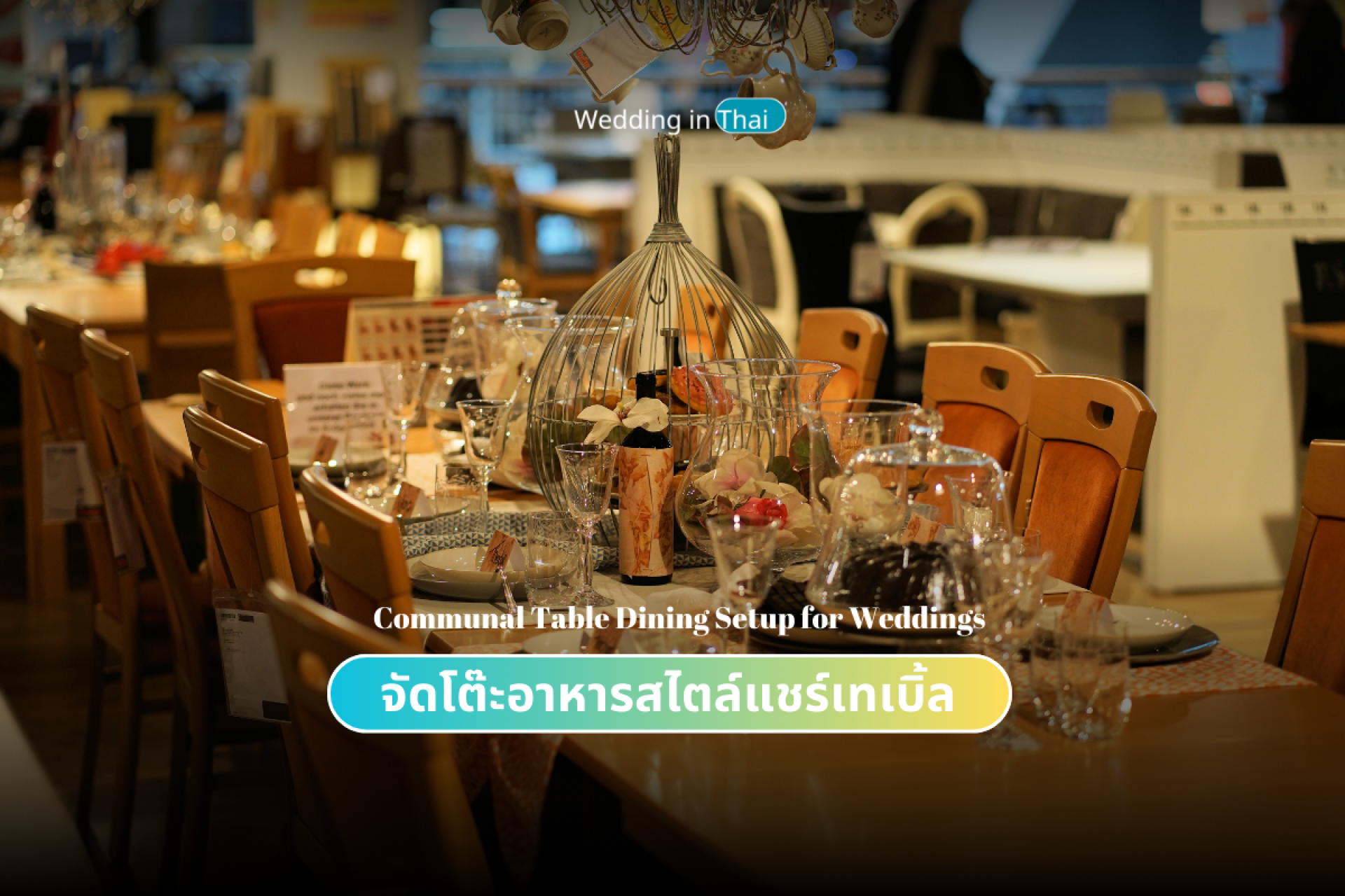 จัดโต๊ะอาหารสไตล์เทเบิ้ลแชร์ (Table Share) เป็นการสร้างบรรยากาศที่อบอุ่นและเป็นกันเองให้กับผู้ร่วมงาน โต๊ะแบบนี้เป็นการรวมกลุ่มนั่งที่ยาวเพื่อให้ทุกคนได้รู้สึกเหมือนครอบครัวใหญ่ ไม่ว่าจะงานเล็กๆ หรือใหญ่ การจัดโต๊ะแบบแชร์นี้ก็ให้ความรู้สึกเหมือนได้แบ่งปันช่วงเวลาพิเศษกัน