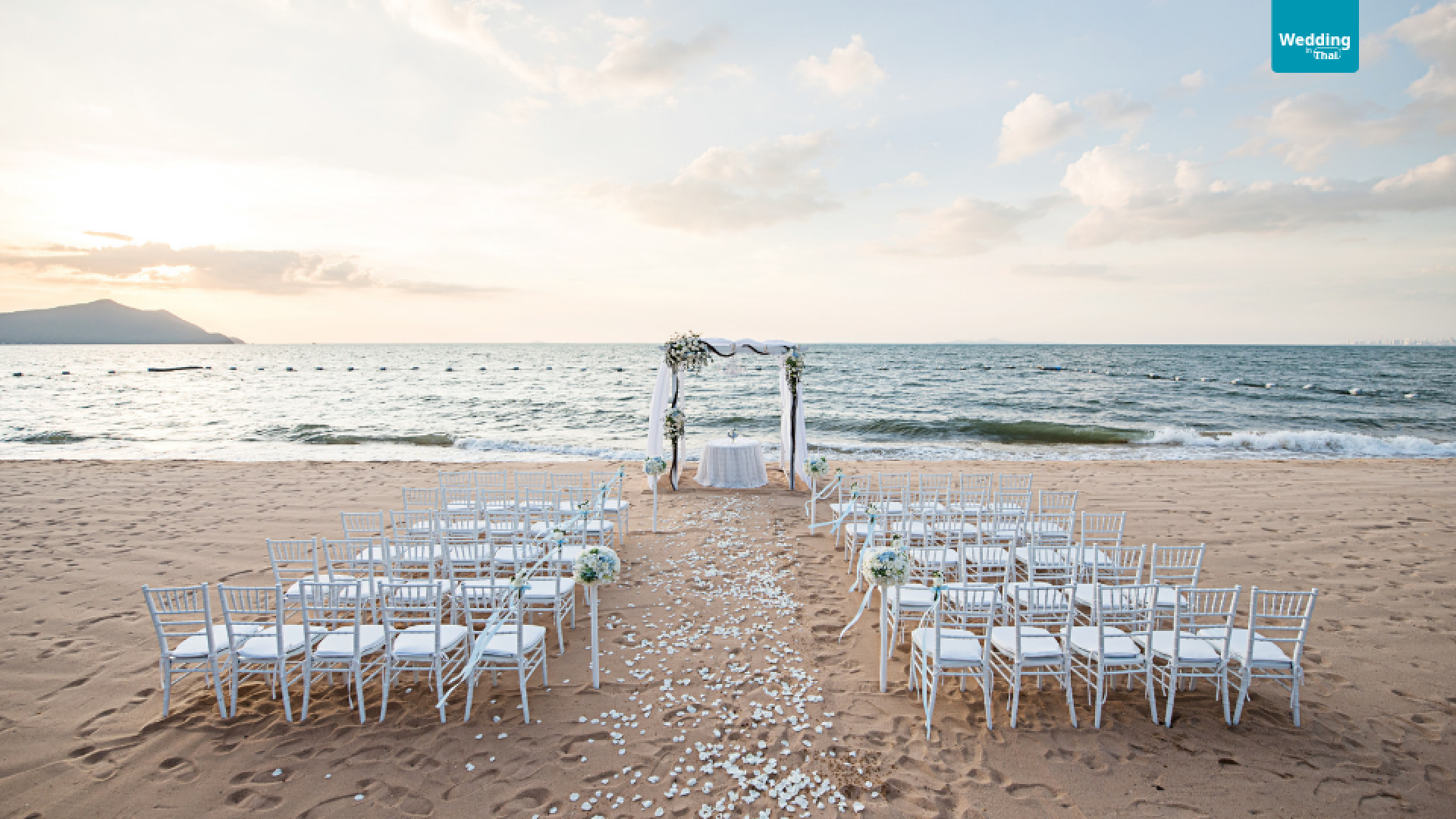 - Beach Ceremony สุดโรแมนติก พิธีแต่งงานบนชายหาด ใช้ฉากหลังเป็นทะเลเปิด ตกแต่งด้วยโทนสีขาว ครีม หรือเอิร์ธโทน ให้ความรู้สึกเรียบหรูและอบอุ่น